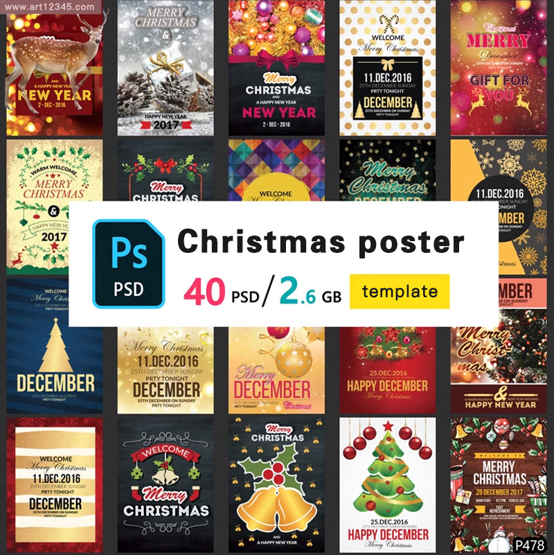 English Christmas poster design template PSD layered flyer promotion event Christmas Eve HD